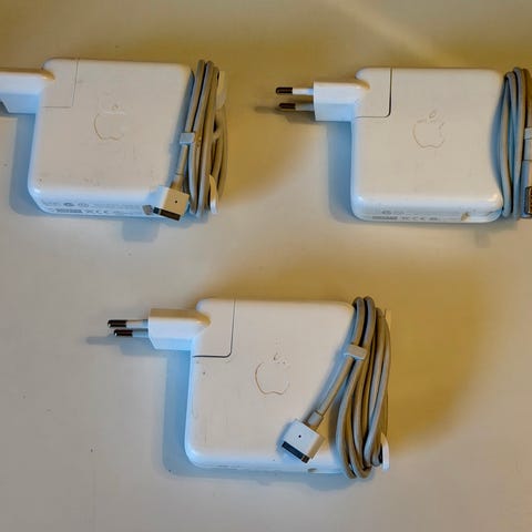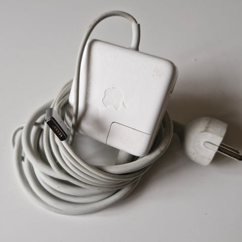 2. MagSafe 2 85 w, Används i 5 år, fungerar, men har mindre skador som inte påverkar laddningen. 200 kronor