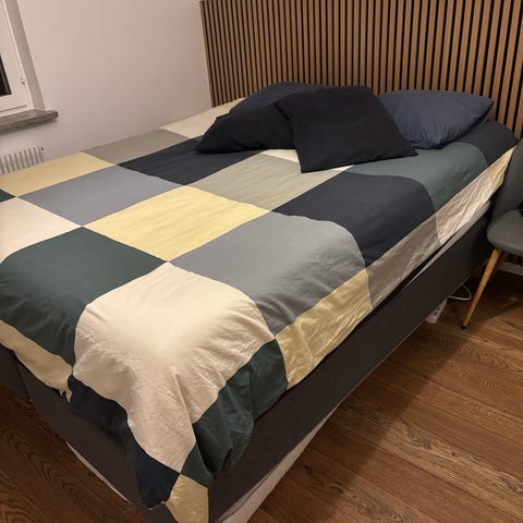 Säljer en bekväm dubbelsäng från IKEA "TUFJORD ", storlek 160×200 cm med stoppad sänggavel, köpt nyligen och i mycket fint skick. Sängen är stabil, bekväm och passar perfekt för sovrum med modern eller stilren inredning.