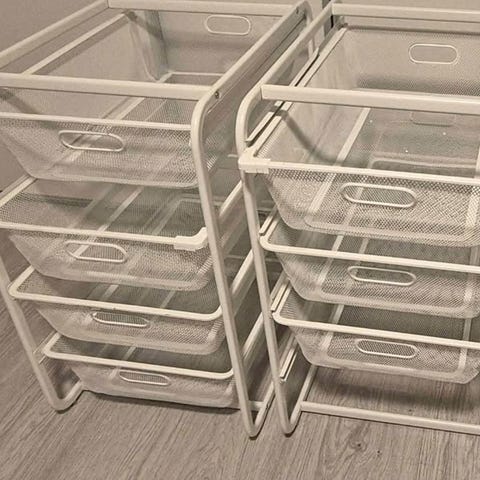 Lättplacerade backstativ för extra förvaring i tex barnrum, förråd, garderob etc. Backstativen är utrustade med hjul. Hjulen är avtagbara, då blir måttet 41x59x69.