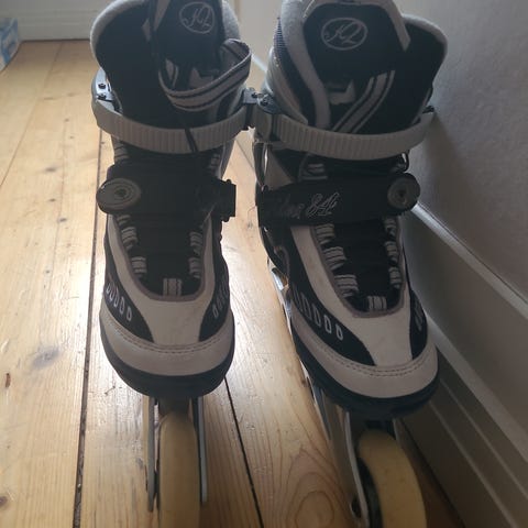 MP Pro rullskridskor inlines för barn. Justerbar storlek 33–36, angiven barnskostorlek 34. Färgkombination i svart, vitt och rött med hård yttre kåpa och vadderad innersko. Snörning, spänne och kardborreband för stabil passform. Fyra hjul på varje skridsko med plastchassi. Lämpliga för rullskridskoåkning och inlinesåkning utomhus för barn i aktuell storlek.