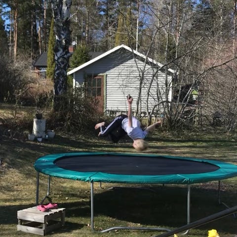 Studsmatta med skydd. Litet hål i mattan ca 1 cm, se bild