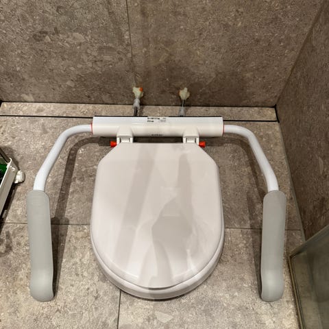 Ergonomiska armstöd som ger stabilt stöd vid förflyttning till och från toaletten
