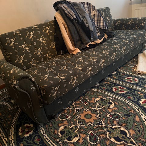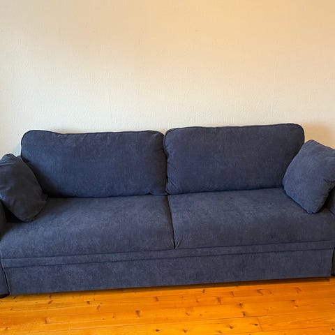 En mörkgrå bäddsoffa säljs pga flytt. Soffan är i använd skick och bilderna är exempelbilder från Trademax.