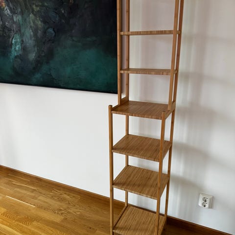 Pilasterhylla med 4 hyllplan i ek från Mio.