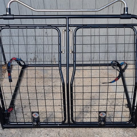 Passar bla till Volvo v60. Hundgaller bur i svart metall. Gallret har rektangulär form med nätkonstruktion och öppningsbar lucka. Låsbar med 2 nycklar, lätt att ta ut ur bilen. Mer praktisk än en hundbur tycker vi.
