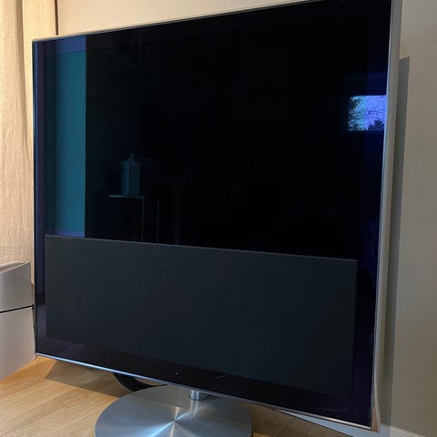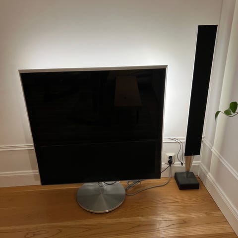 BeoVision Avant 75” nya generationen med Beo remote 1 och motoriserat väggfäste.