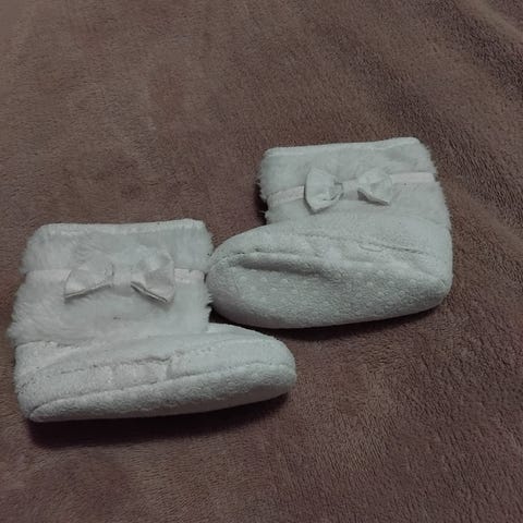 H&M babyskor i storlek 19 för unisex. Skorna är marinblå med vit insida och röd hälflik. De har två kardborreband över foten för enkel av- och påtagning. Sulan är mönstrad för bättre grepp. Passar som första skor eller för inomhus- och lättare utomhusbruk.