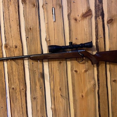Är som rubriken lyder en Tikka master i kaliber 222. Den har löstagbart magasin och är gängad 14x1 för ljuddämpare. Enda märket som finns är det som är på kolven, syns på bilden. Bössan kan skickas men då får köpare står för frakten. Priset är diskuterbart.