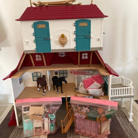 Og Pet Clinic leksaksdjurklinik med flera delar och tillbehör. Setet består av en klinikmiljö med undersökningsbord, burar, diskbänk och sittplatser. Till kliniken hör mjuka leksaksdjur, korgar, matskålar, leksaksmediciner, halsband, koppel, kragar, röntgenbilder, skyltar och andra smådelar för djurvård i leksaksform. Lämpligt för barn som vill leka veterinär och ta hand om leksaksdjur i en klinikmiljö. Batteri ingår och de är med extra djur och assessorer som inte ingick i de original sättet. Original/Ny pris - 2 500 - 3 000kr
