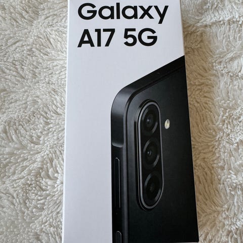 Samsung Galaxy A17 5G mobiltelefon med 128 GB internminne. Modellen tillhör Galaxy A-serien och har stöd för 5G-uppkoppling. Lagringsutrymmet på 128 GB ger plats för appar, bilder, video och andra filer. Levereras i originalförpackning enligt bilderna.