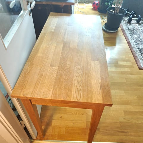 Perfekt litet bord för hemmakontor, studier eller som extra arbetsyta. Tar lite plats men är stabilt och praktiskt.
