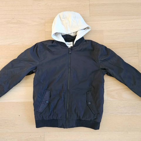Mycket fint skick. Lite ytludd/noppror finns på muddarna. Luvan är avtagbar.