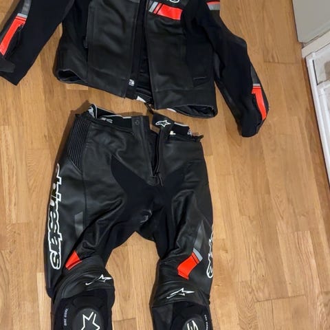 Dainese skinnställ för motorcykel i svart. Tvådelat ställ med jacka och byxa som kan kopplas ihop. Dam strl 42.