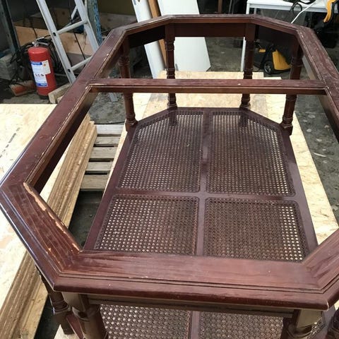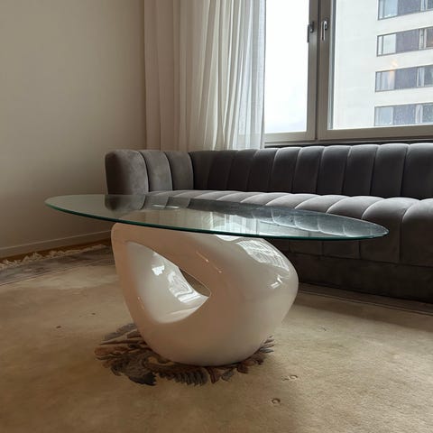trä soffbord med glaspanel