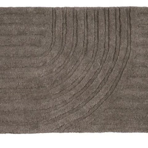 Rektangulär matta i beige och grå toner med geometriskt mönster. Passar exempelvis vardagsrum, sovrum eller hall. Mattan har kort lugg och är avsedd för inomhusbruk på hårda golv som parkett eller laminat.