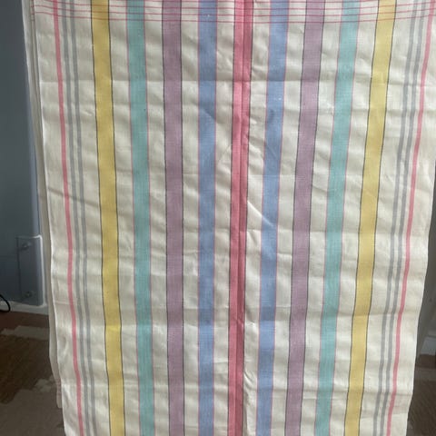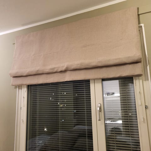 Beige randig hissgardin som är sparsamt använd. 140*160 cm inköpt på Åhléns