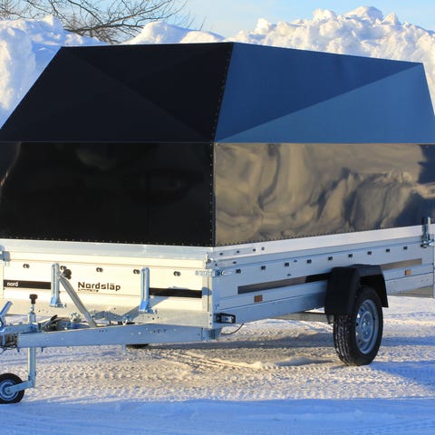 Släpvagnen har en tippbar dragstång med skruvtipp.