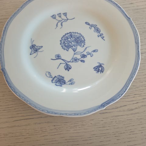 4 st tallrikar i porslin mat tallrikar, med blåvit blommig dekor runt kanten..