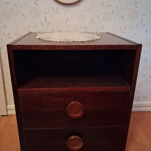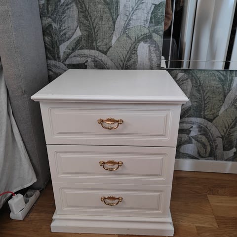 Två sängbord som jag målat i en fin ljusrosa färg men ser nästan vita ut. Stabila med en hylla inuti! Får plats allt du behöver. Säljer båda för 800kr!