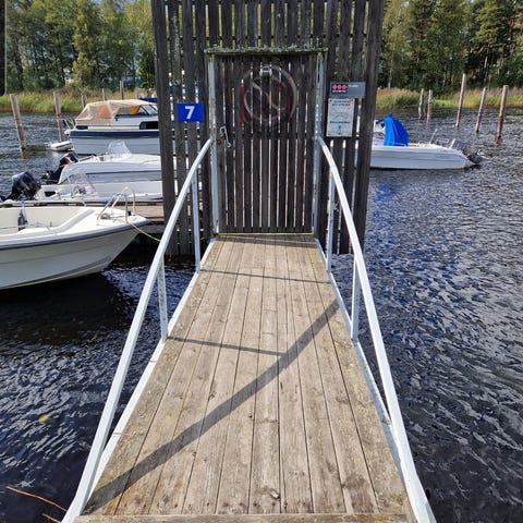 Båtplats vid brygga på Heden (Karlstad båtklubb)med tillgång till elanslutning och vatten Platsen ligger vid träbrygga med grind markerad med nummer 10. Förtöjningslinor och stolpar för förtöjning finns. Lämplig för fritidsbåt som får plats inom de stolpar och linor som visas på bilderna. Bredd ca 4m. Passar för säsongsförvaring och daglig användning av båt i skyddad småbåtshamn som bevakas av Vaktbolag. Sjösättningsramp och båtlyft i närheten.. Platsen kan säljas eller uthyras. Uthyres 3000kr för säsongen 2026. Vill man köpa platsen är priset 45000kr. Bryggplats. Båtplats. Karlstad. Hedenjämnan. KBK.