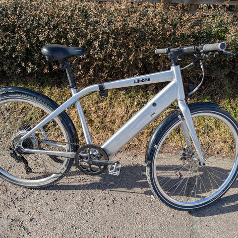 Elcykel dam ramstorlek 50 cm och 28" hjulstorlek. Cykeln har vit ram med lågt insteg, brun sadel och bruna handtag. Pakethållare där batteriet är monterat. Elmotor i framhjulet, 36v 250W. Nycklar till både bakhjulslås och batteri samt låskätting. Klädd cykelkorg. Cykelhjälm medföljer.