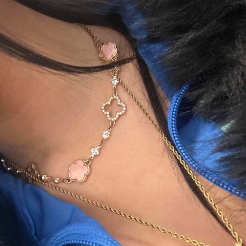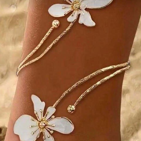 Armbanden har en elegant blom-/fyrklöverdesign med guldfärgad kedja.