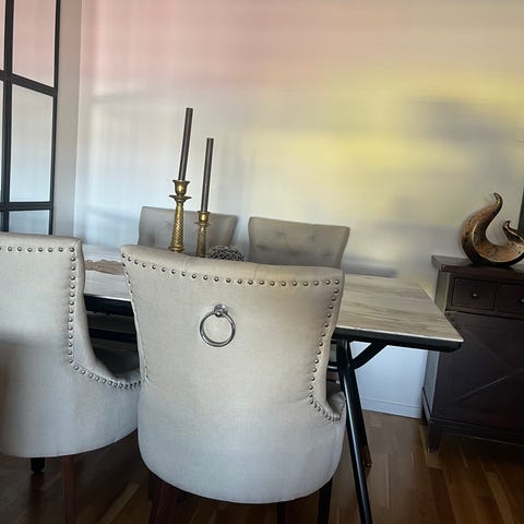 Vi säljer 8 stycken stolar (Ludvig från Mio) i färgen ”brunbetsad”. Stolarna köptes hösten 2025 och ordinarie pris är 1295 kr styck. På två av stolarna finns fabrikatsfel (se bild 3 och 4). Stolarna är jättesköna, fina och stabila och vi säljer dem endast pga att vi köpt nytt matbord som inte passar ihop med stolarna. Stolarna kommer inte monteras ner av oss, vill man som köpare montera ned stolarna går det givetvis bra. Köparen tar med bärhjälp och betalning sker via Swish. OBS; INGET ANNAT på bilden är till salu, det är endast stolarna.