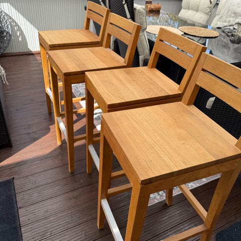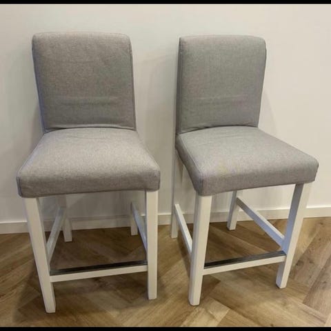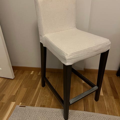 Säljer 4 bekväma barstolar från Mio i modell Ekenäs. Helt oanvända. Ben i massivt vitlackerat trä, sits och rygg i gråbeige tyg. Nypriset var 5.980 kr (1.495 kr styck). Säljes endast tillsammans. Pris 2.000 kr (500 kr styck).