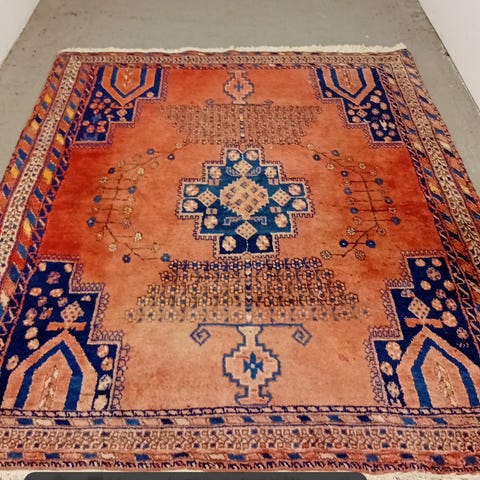 En mycket vacker persisk silkmatta med en unik färg vävd med siden. Det finns information på baksidan av mattan.