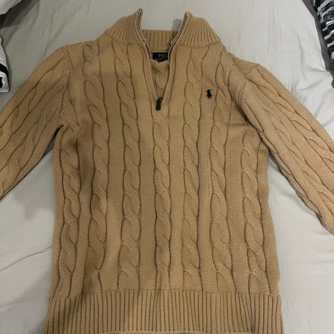 Ralph Lauren Polo herrtröja halvzip beige ull M