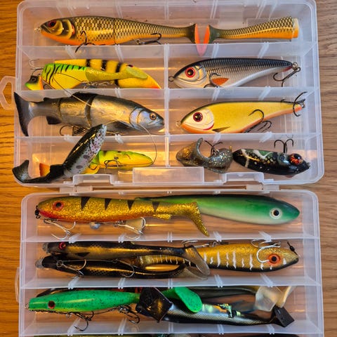 Hej säljer 3 stora boxar med gäddbeten då jag inte fiskar gädda längre, blandade märken som westin och svartzonker. Är I använt skick och vissa i Mycket fint skick kan eventuellt skicka med Westin väska. Tänkte 2000.