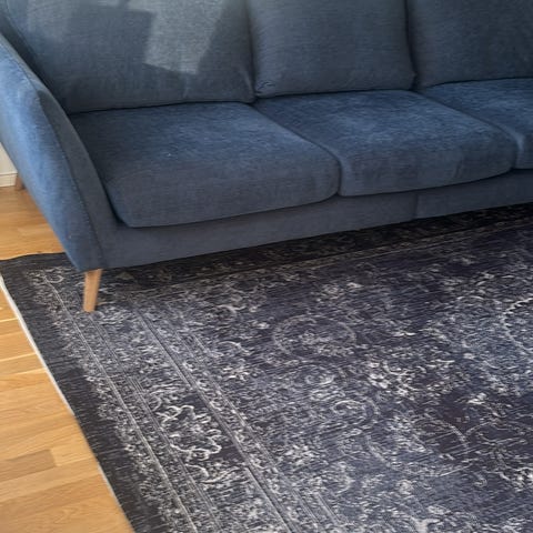 FALLSTONE FJÄDER, SELECTED BY EM HOME. 2.5-sits svängd, tyg: Eros midnight, ben ek/mässing + fotpall med ben ek/mässingshjul. Klassisk soffa i Howard-modell med mjukt rundade former och en stomme av björkplywood. De främre träbenen har kromade hjul för lätt förflyttning. Fjäderkomforten i ryggen är en mix av fjäder och riven polyeter och sitsen i kallskuret med topp av fjäder och riven polyeter. Ben i ek och hjul i framkant. Nypris 2022, 25.000kr.