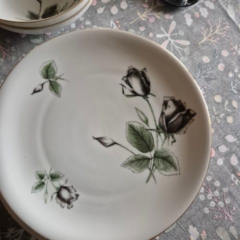 En så vacker blommig 24-delad servis i stengods. Tallrikarna är tunga/bra kvalitet. Helt i nyskick, har ätit från någon enstaka tallrik men majoriteten är i nyskick/oanvända och inga anmärkningar alls. 24-delar egentligen men köpte 1 extra assiette (så 25 delar totalt).