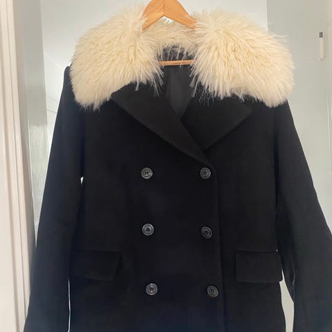 Användbar kappa när man vill vara snygg så här års. Skön pälskrake och bra passform med bara 3 knappar.