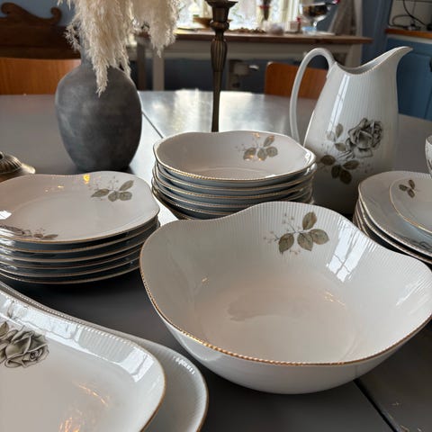 Kaffeservis från Uppsala Ekeby 'Luxor' säljes. 6 koppar, 6 kaffefat o 6 assietter.