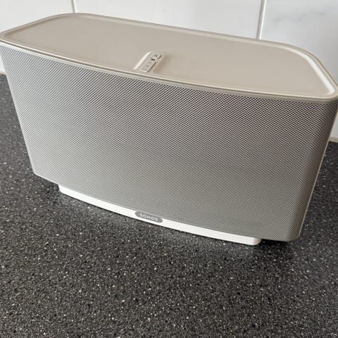 Sonos Play:5 trådlös högtalare i vit färg med grå front. Mycket fin skick och jag är villig att köra den till dig om du bor i Stockholm för totalt 1400kr