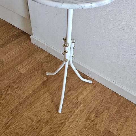 Silver bord : mått ca 63cm högt ca 48,5cm i diameter. pris 1000kr