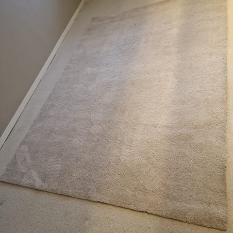 IKEA Stoense matta i grå färg. Rektangulär modell som passar exempelvis vardagsrum, sovrum eller hall. Textilmattan ger en mjuk yta att gå på och kan användas som golvmatta i olika rum i hemmet.