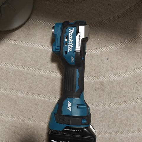 Makita vinkelslip 18v. Verktyget levereras tillsammans med två Makita-batterier och två kapskivor. Sidhandtag och fäste ingår enligt bild.