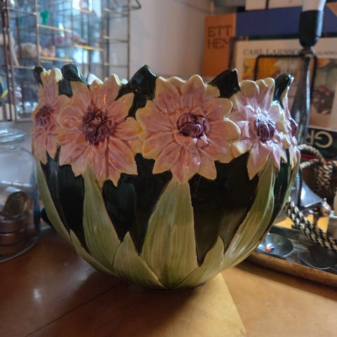 Säljer en kruka / ytterfoder med fantastisk dekor.