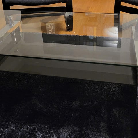 Soffbord med rustik skiva samt hylla under