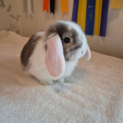 En liten hona, chinchilla manteltecknad söker ett nytt hem då hon inte ska bli mamma mer
