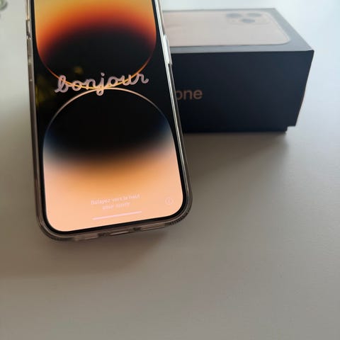 Specifikationer:• Modell: iPhone 14 Pro• Lagring: 256 GB• Färg: Lila• Skärm: Dynamic Island• Kamera: Trippelkamera