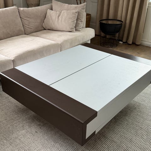 Bordet är stabilt, välbyggt och i mycket gott skick. Inga större repor eller skador, väl omhändertaget och sparsamt använt. Passar lika bra i vardagsrum som i lounge- eller kontorsmiljö.