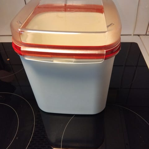 Jag säljer nu en Tupperware plastform med lock, volym 430 ml. Oval form i lila plast, lämplig för förvaring eller tillagning av mindre mängder mat. Produkten är märkt med Tupperware-logotyp och volymangivelse på undersidan. Passar i kök för vardaglig användning, exempelvis för förvaring i kyl eller frys enligt tillverkarens symboler på botten.