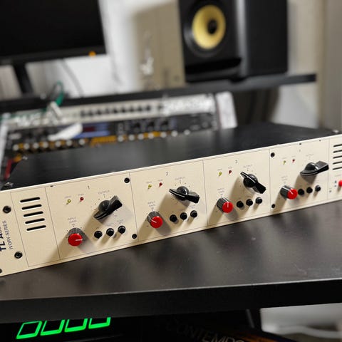 På fronten finns patchpunkter för styrspänningar och ljudsignaler.