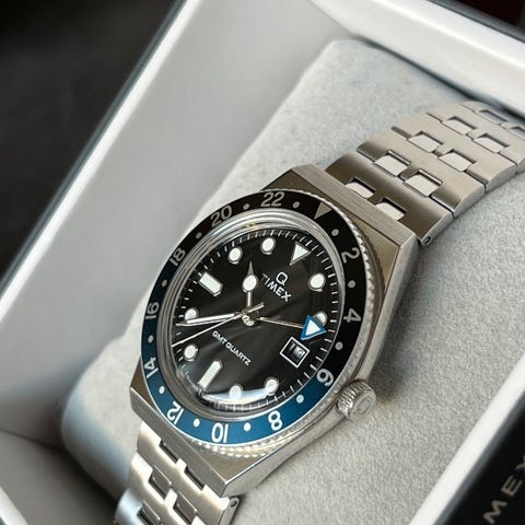 Automatisk med gmt funktion, roterande bezel.