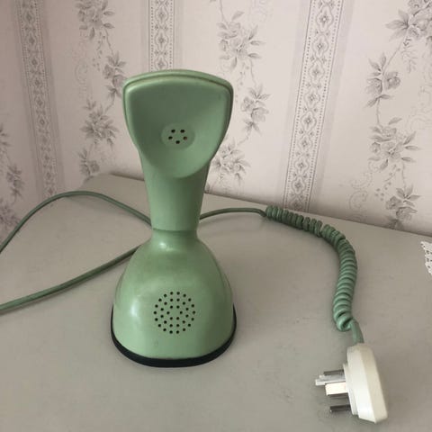 Den klassiska kobratelefon Ericofon från LM Ericsson för fast telefonjack. Höjd 21 cm. Samlarobjekt.
