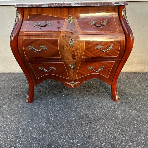 Vintage rokokobyrå i mahogny/marmorskiva 1950/1960-tal