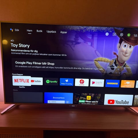 Smart tv med alla möjliga appar, kontroll och fötter finns kvar.